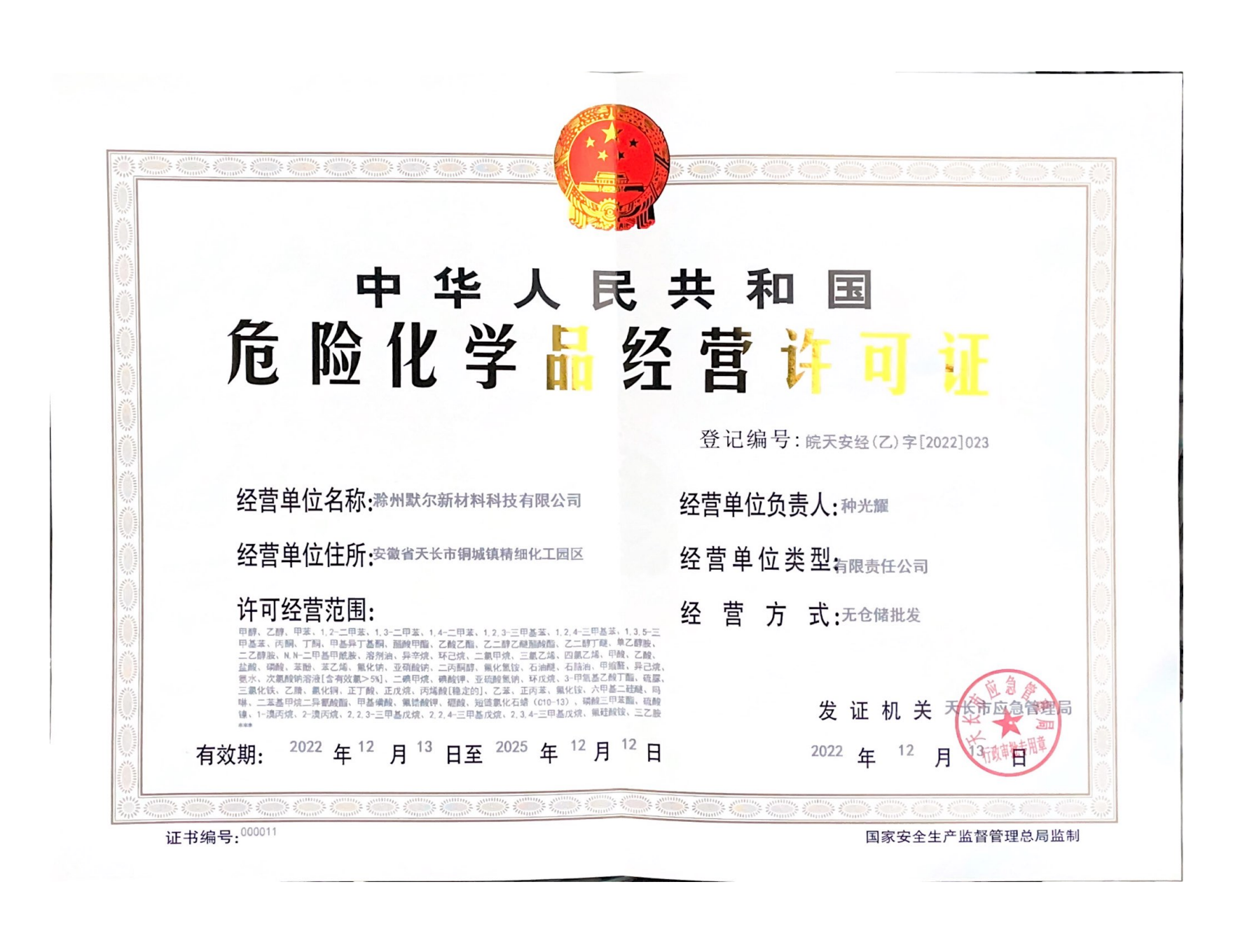 滁州默尔新材料科技有限公司,成立于2016年,位于滁州天长市铜城镇精细化工园区,工厂占地110亩,是一家致力于纳米材料、精细化学品等领域的研发、生产、销售于一体的科技型企业。企业通过了ISO9001质量管理体系认证,ISO14001环境管理体系认证,ISO45001职业健康安全管理体系认证。